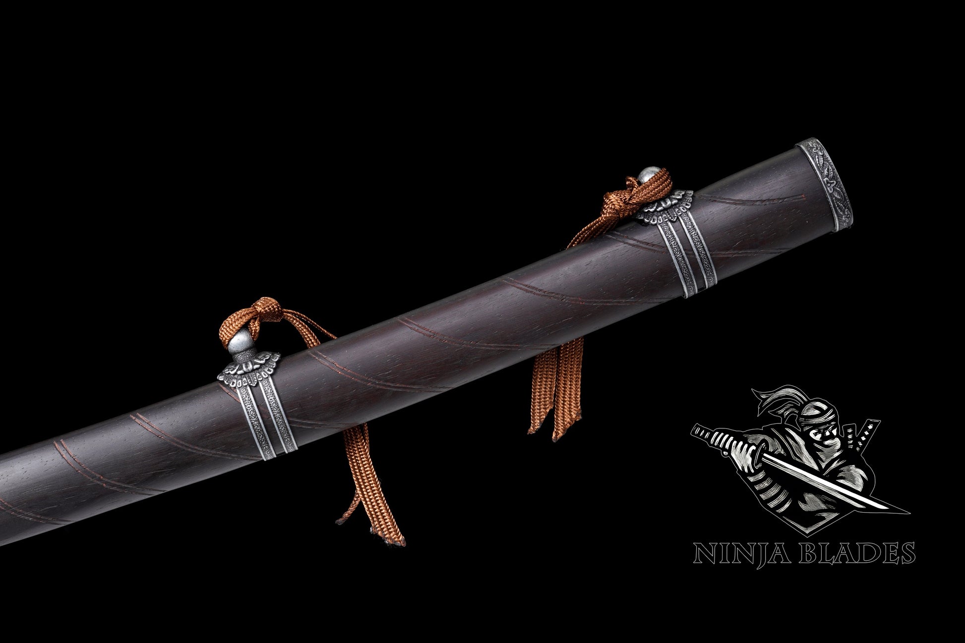 The Black Mortal Blade inspires this hand-forged katana replica.