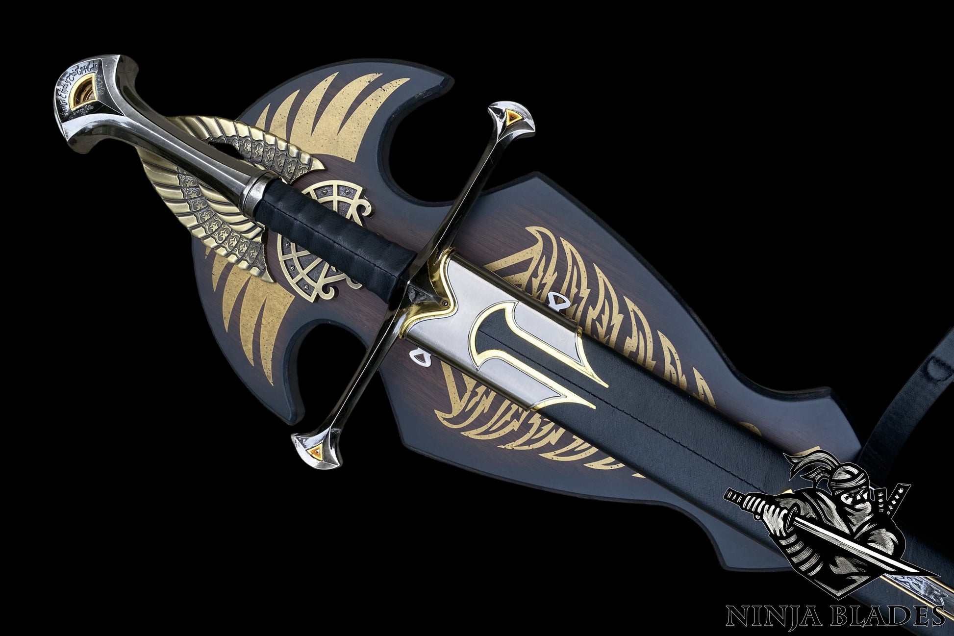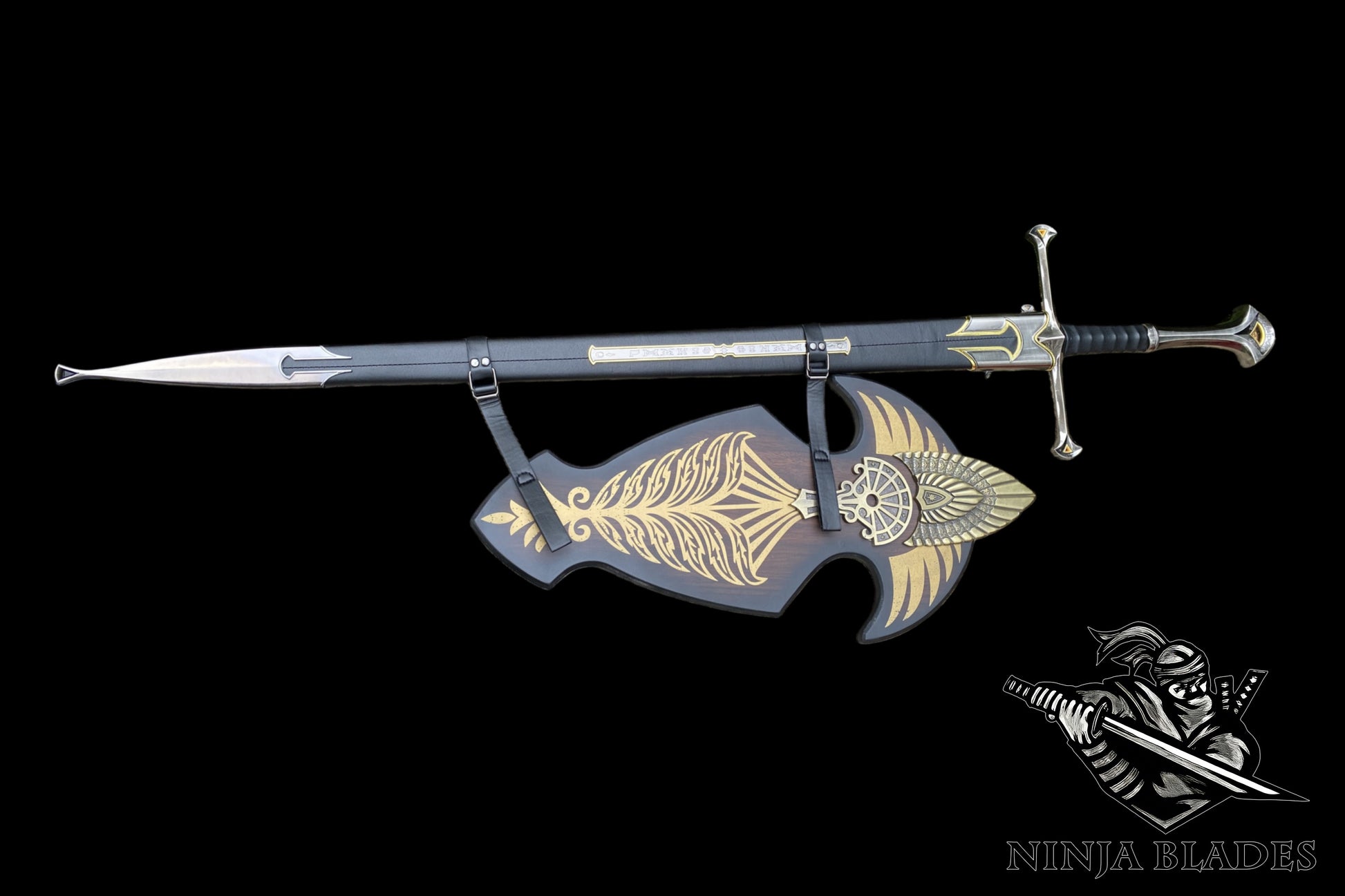 It comes complete with a premium black leather scabbard and a decorative wall plaque, making it the centerpiece of any Middle-earth collection.