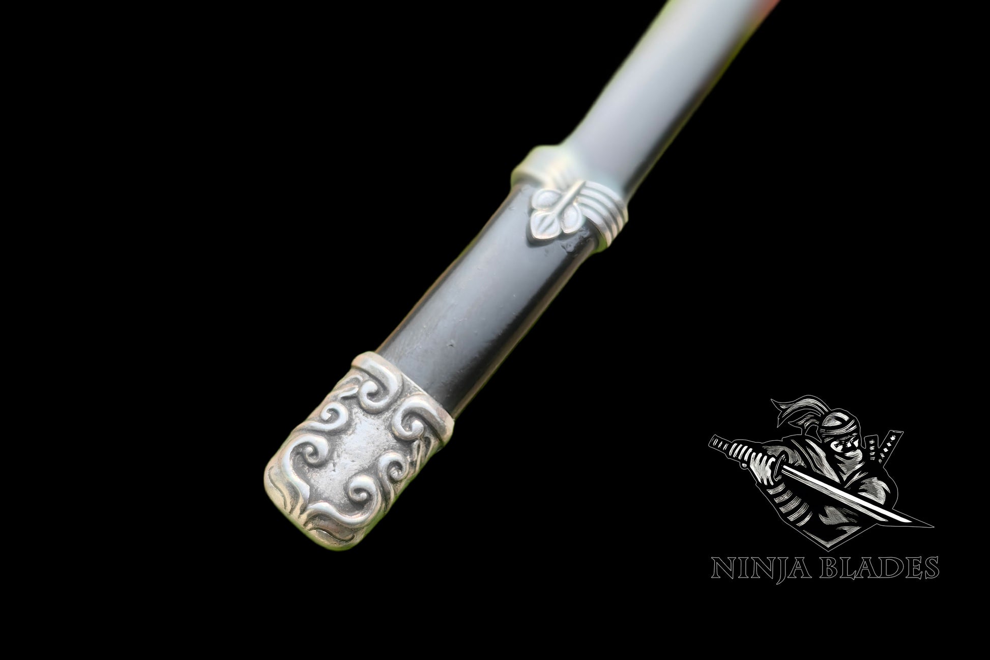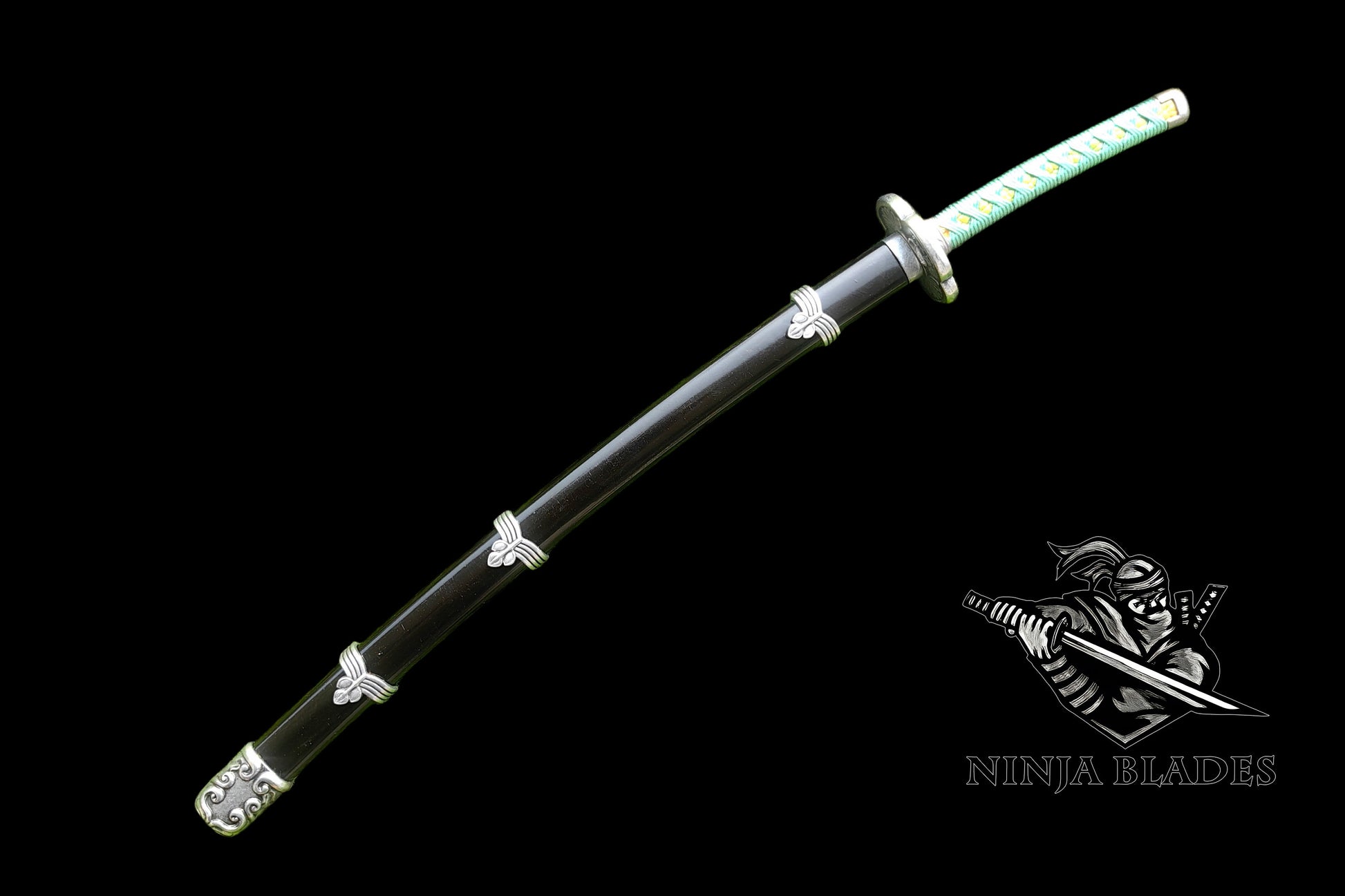Faithfully recreates Kusabimaru's signature black scabbard with silver butterfly accents, teal handle with gold diamond patterns, and distinctive lotus-shaped tsuba—true to the game's original design.
