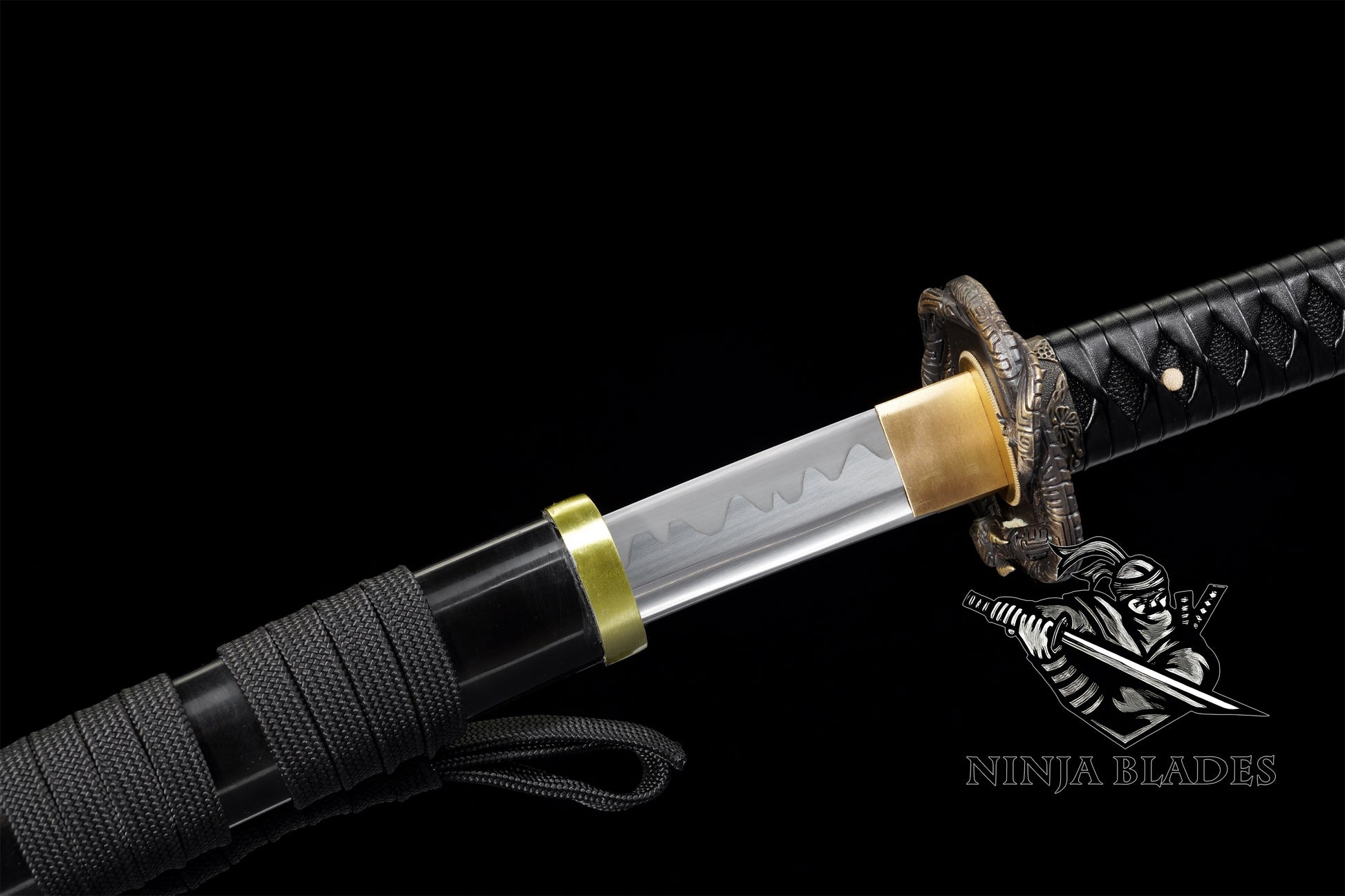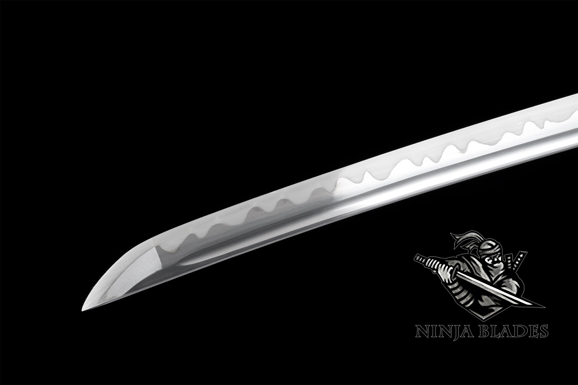 The katana blade has a beautiful clay-tempered pattern.